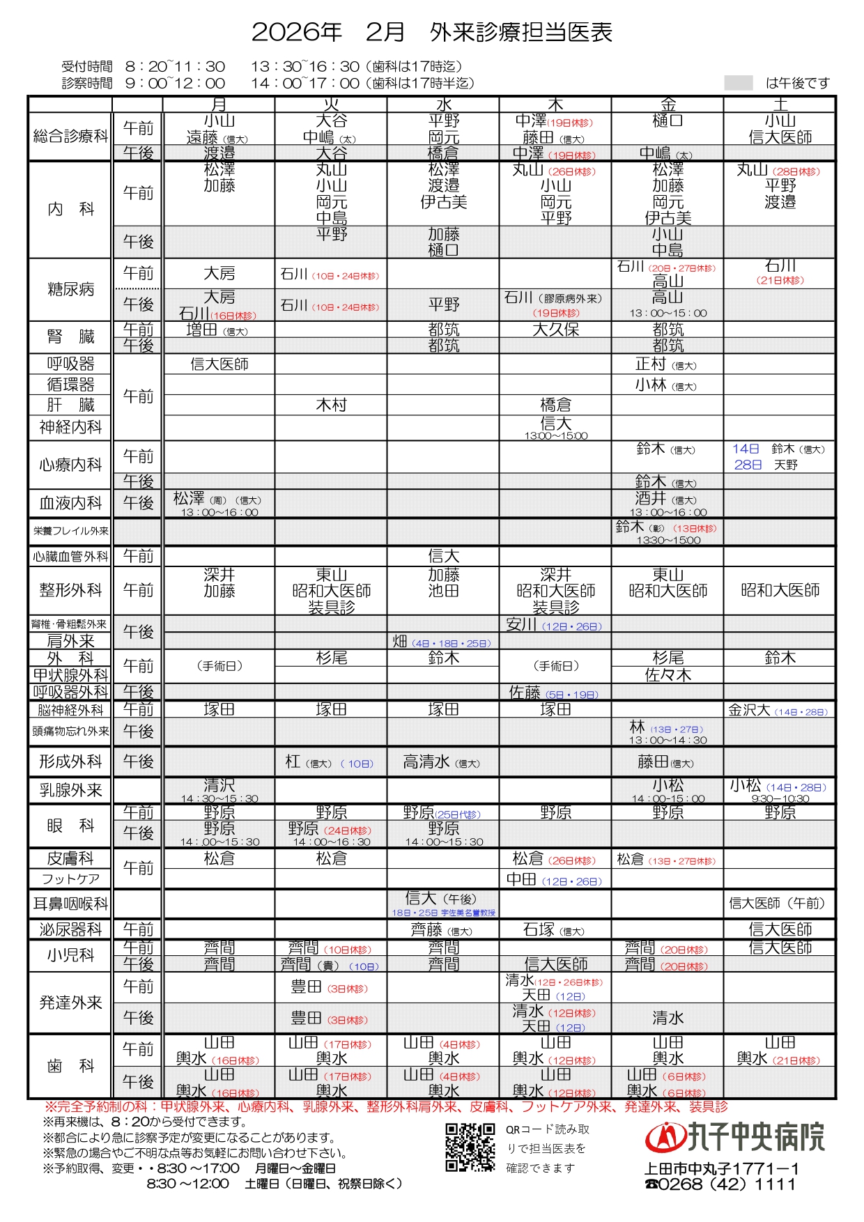 2月 外来診療担当医表
